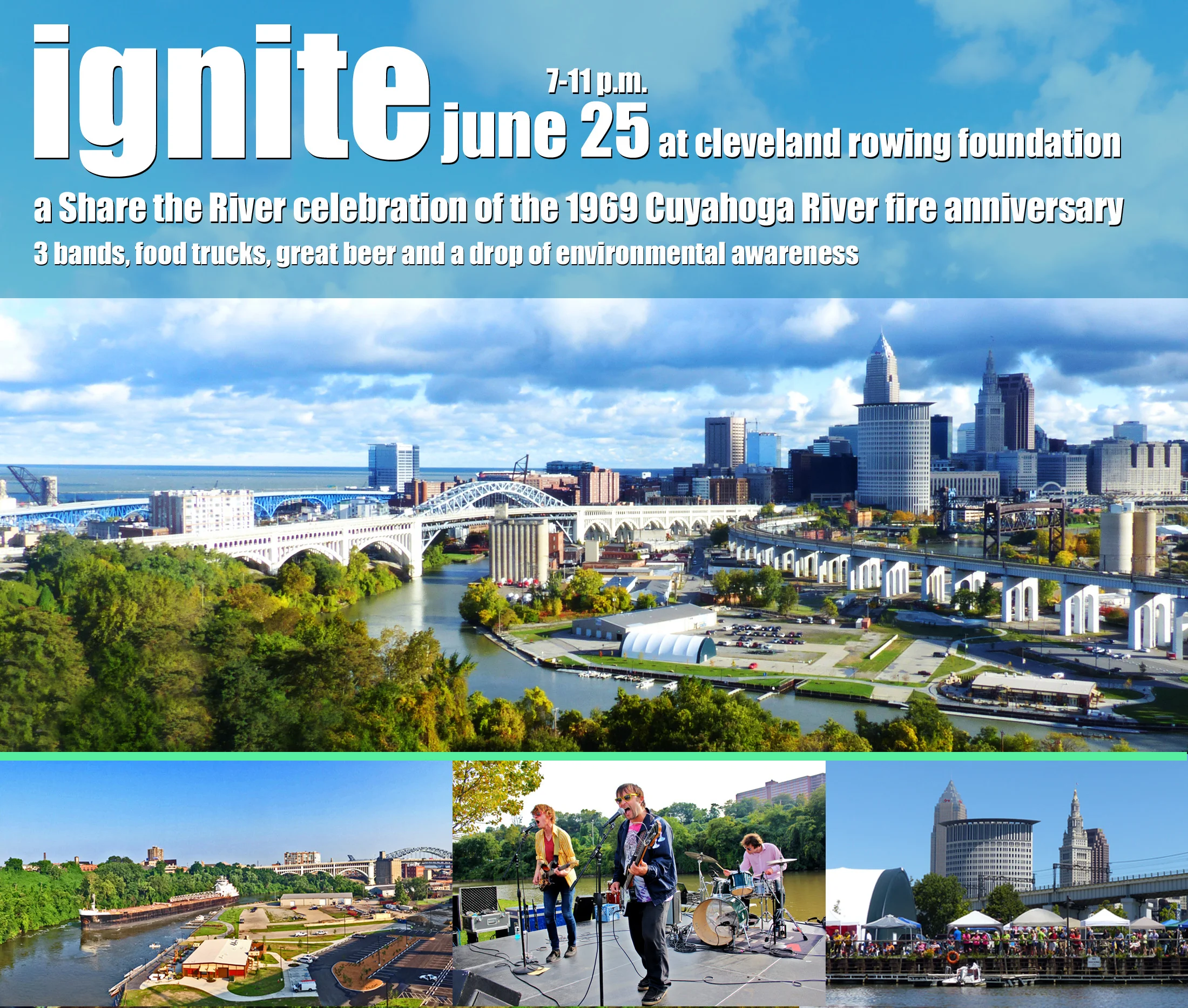 With media attention beginning to focus on Cleveland during: 1) the NBA Finals and 2) the Republic National Convention, it seems to us a celebration of Cleveland and the Cuyahoga River's comeback would be a tremendous opportunity for Cleveland to take control of and reshape the overused "burning river" narrative. As Destination Cleveland President/CEO and CEO of the Cleveland RNC Host Committee recently said "We can't control what others put out there. All we can do is to keep sharing the fantastic things that are happening in Cleveland - and that message is gaining traction". This is the idea behind "Ignite" a free celebration of the 1969 Cuyahoga River fire anniversary with three quality bands, food trucks, great beer and a drop of environmental advocacy mixed in to provide a media friendly waterfront celebration on the evening of Saturday, June 25, less than three weeks before the RNC.