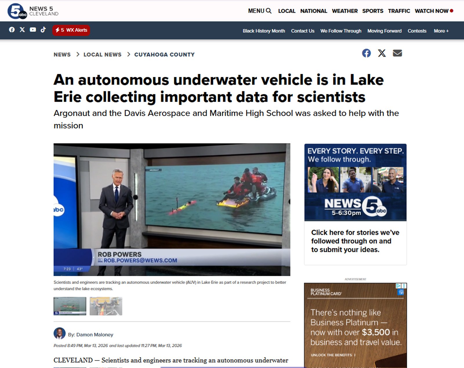 This week our friends at Argonaut gave us a heads-up on an autonomous underwater vehicle (AUV) being deployed yesterday into Lake Erie by a team from the Woods Hole Oceanographic Institution (WHOI).