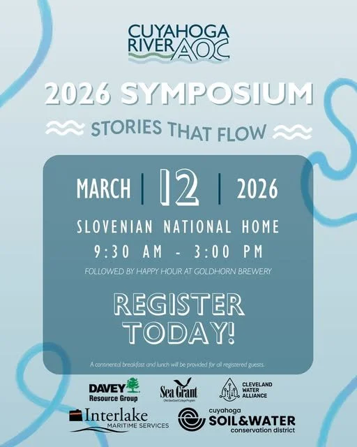 Join the Cuyahoga River Area of Concern (AOC) Advisory Committee on March 12, 2026, from 9:30 AM–3:00 PM at the Slovenian National Home in Cleveland’s St. Clair Superior neighborhood for our biennial symposium: #StoriesThatFlow!